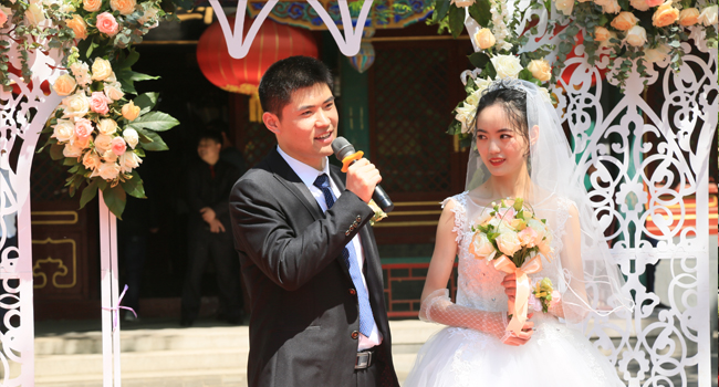 2026年5月4日下午,来自全国的新人将踏上象征幸福生活开始的星光大道,在新人明星墙上留下佳偶爱的印记。专业主持,婚礼彩排。华灯初放,洞房花烛夜,东环廊为新人送上祝福。中国梦,新人梦,百年好合,天赐良缘。