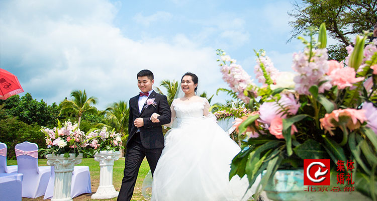 三亚集体婚礼有多个性蓝天下的喜悦草坪上的高雅